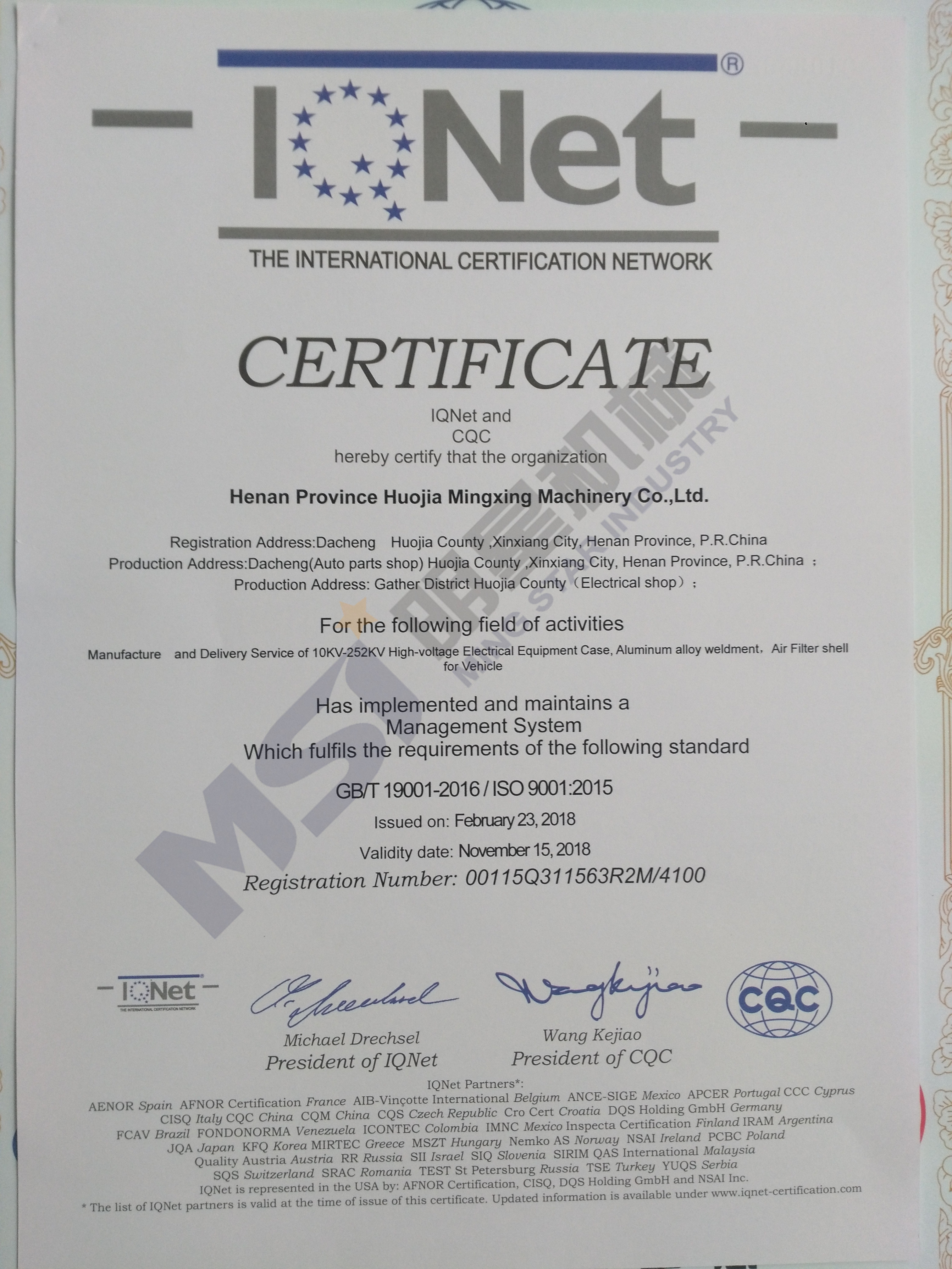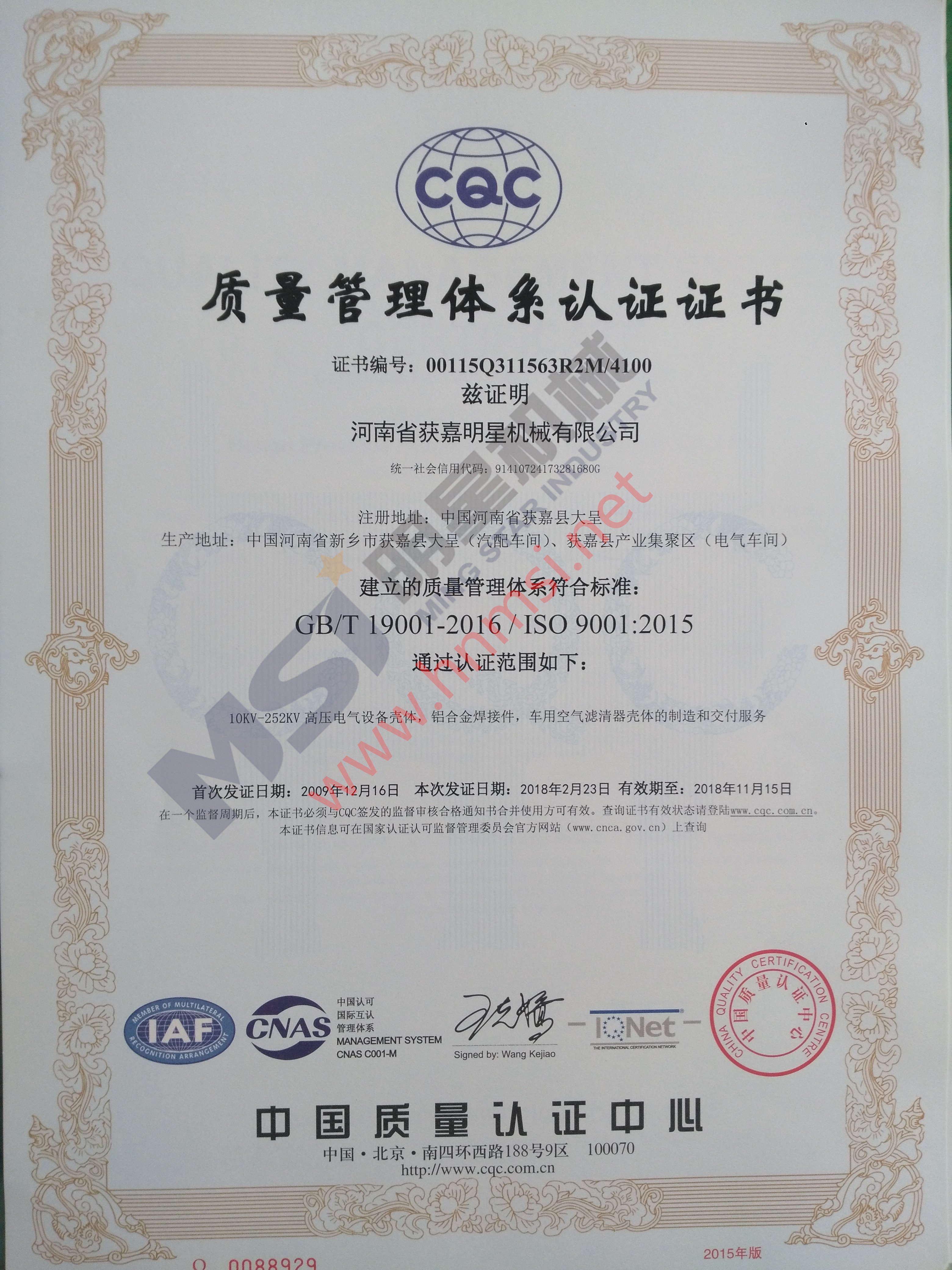 日前,經(jīng)過(guò)中國(guó)質(zhì)量認(rèn)證中心**、嚴(yán)格、細(xì)致的審核,明星機(jī)械質(zhì)量管理體系成功實(shí)現(xiàn)了由ISO9001:2008向ISO9001:2015的轉(zhuǎn)版審核。此次通過(guò)認(rèn)證的范圍是:高壓電氣設(shè)備殼體,鋁合金焊接件,濾清器殼體的制造和交付服務(wù)。